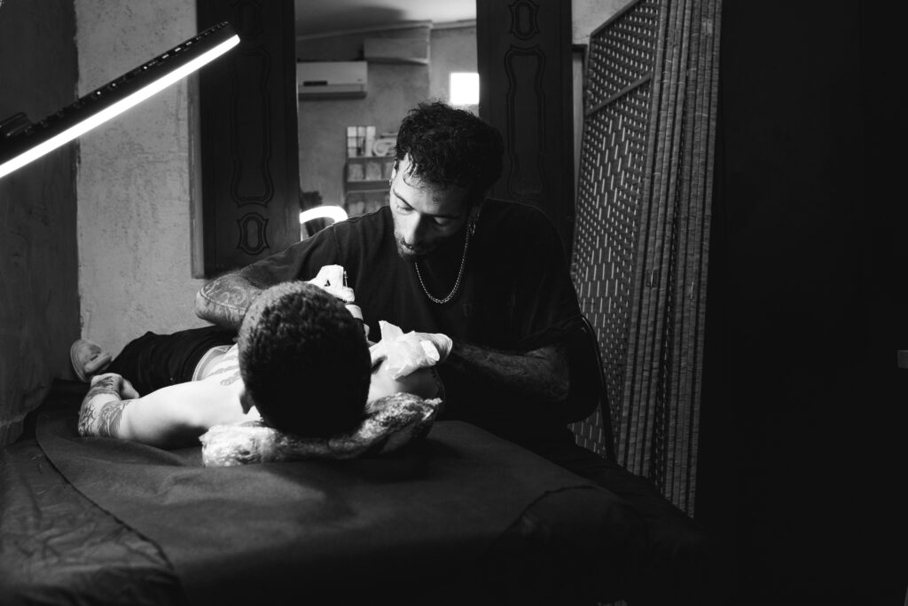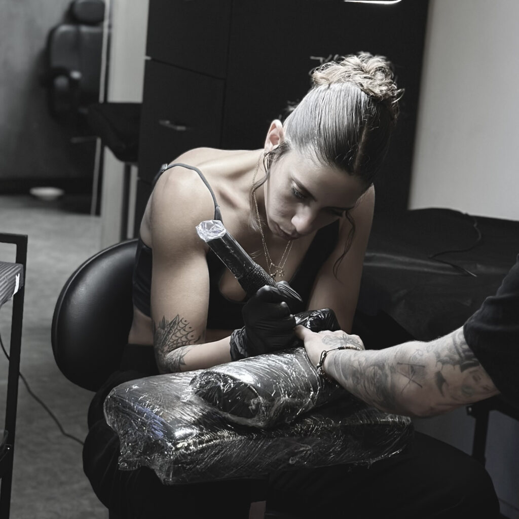 האמנים שלנו לוקחים את אמנות הקעקועים לשלב הבא, עם יצירות חד-פעמיות שלא דומות לאף קעקוע אחר. כל קו, כל גוון, כל פרט נבחר בקפידה כדי לשקף אותך ואת הסיפור שלך בצורה הכי מדויקת שיש. מהפגישה הראשונה ועד רגע בו המחט פוגשת את העור – אנחנו כאן ללוות אותך, להפוך את הרעיון שבדמיון שלך ליצירת אמנות חיה על גופך. התהליך שלנו מותאם אישית לכל לקוח, כשבכל שלב אנחנו שואפים ליצור חיבור עמוק ואמיתי בין האמנות לגוף שלך, תוך שמירה על סטנדרטים בלתי מתפשרים של איכות ודיוק.